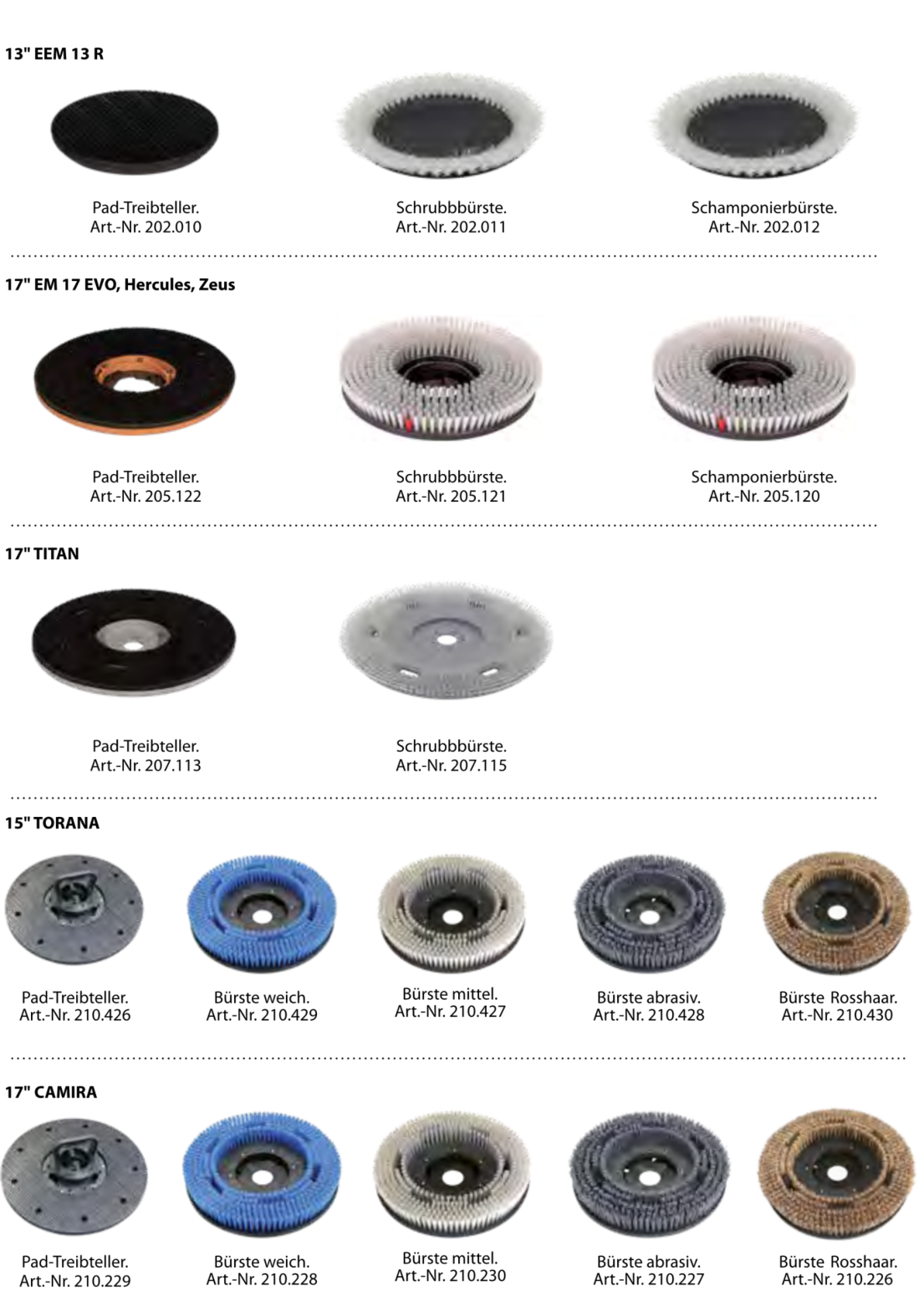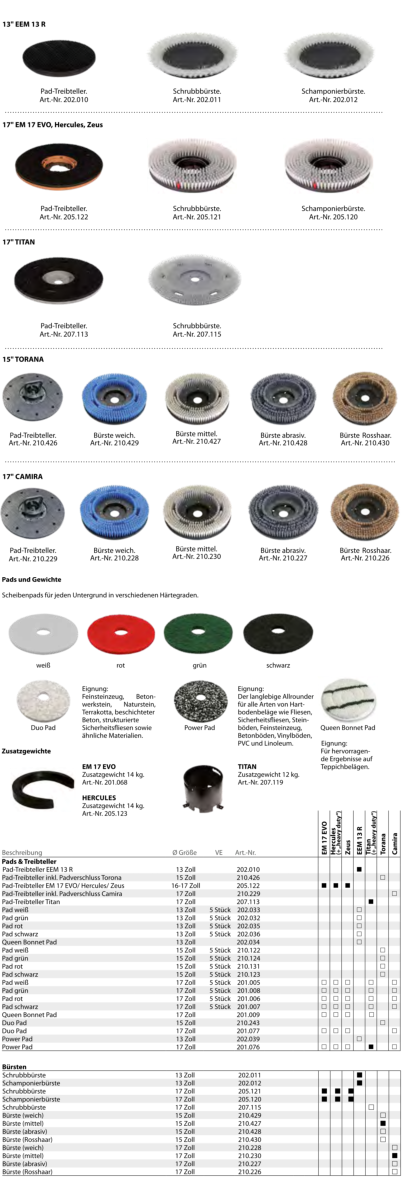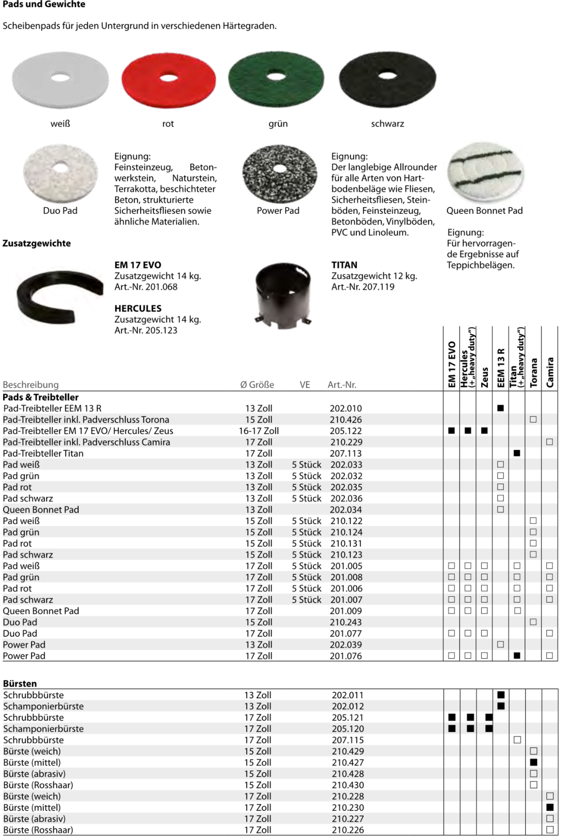 Pads, Bürsten, Treibteller (Padmitnehmer), Gewichte